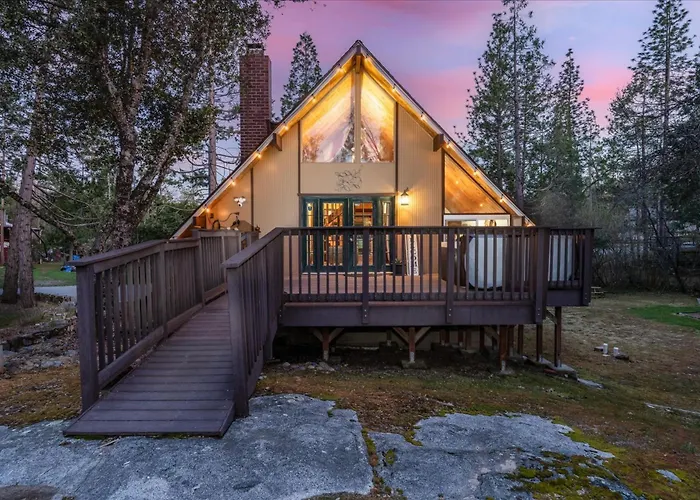 Die 1-Zimmer- Bass Lake Chalet- A Frame With Hot Tub/Firepit Oakhurst befindet sich in einem Wohngebiet von Oakhurst und bietet Gästen Entspannung mit einem Jacuzzi.